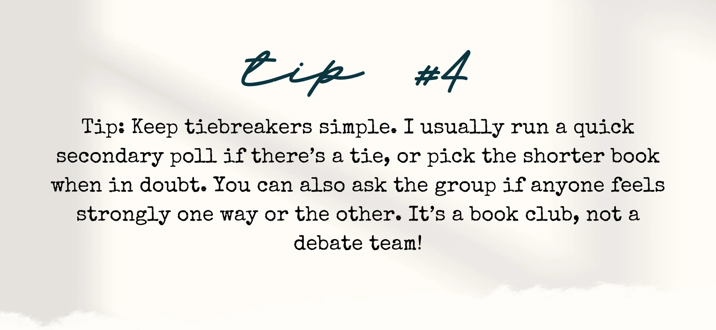 That said, just because you plan four books in advance doesn’t mean you have to stick to that order no matter what. As I mentioned in point 2, things can change. If a book no longer feels right for the group or you’re just not in the mood, it’s okay to call for a re-vote or make a swap. Flexibility is part of what keeps the experience enjoyable.